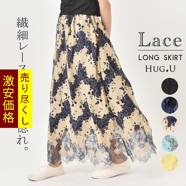 スカート レディース ロングスカート レース 花柄 ウエストゴム レーススカート フレアスカート Aライン マキシ丈 総レース 春夏 X447 Hug U ハグユー 通販 Yahoo ショッピング